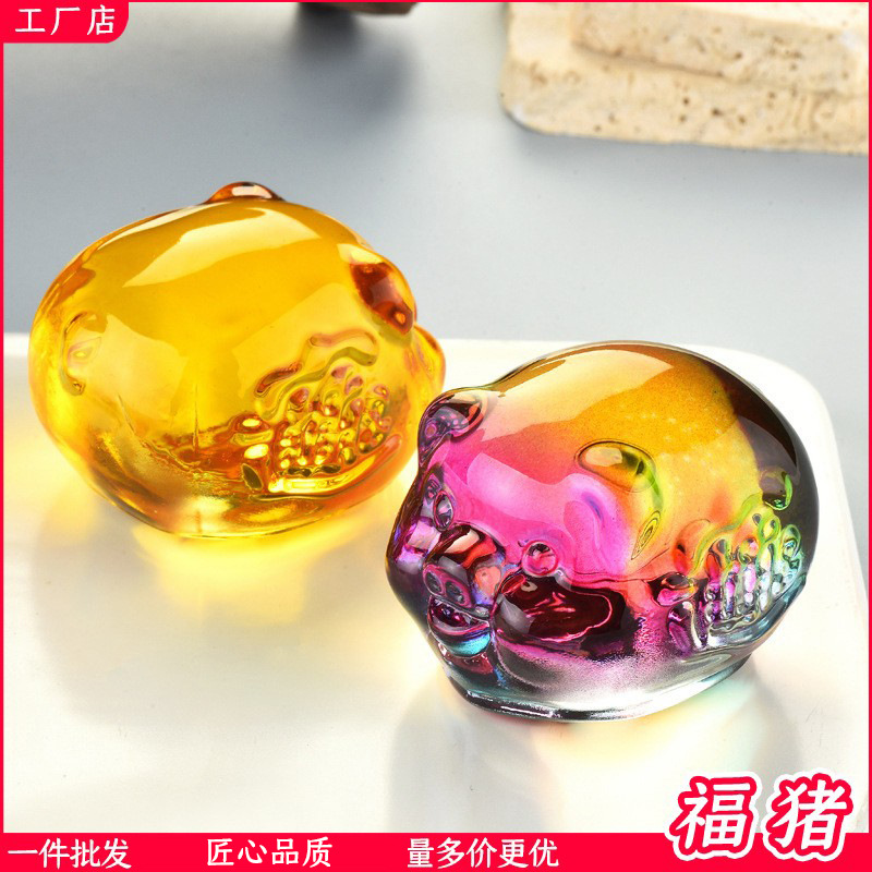 ガラス製干支豚の置物、干支フィギュア、幸運の誕生日プレゼント、家のリビングルームの装飾、シトリンゴールドピッグ