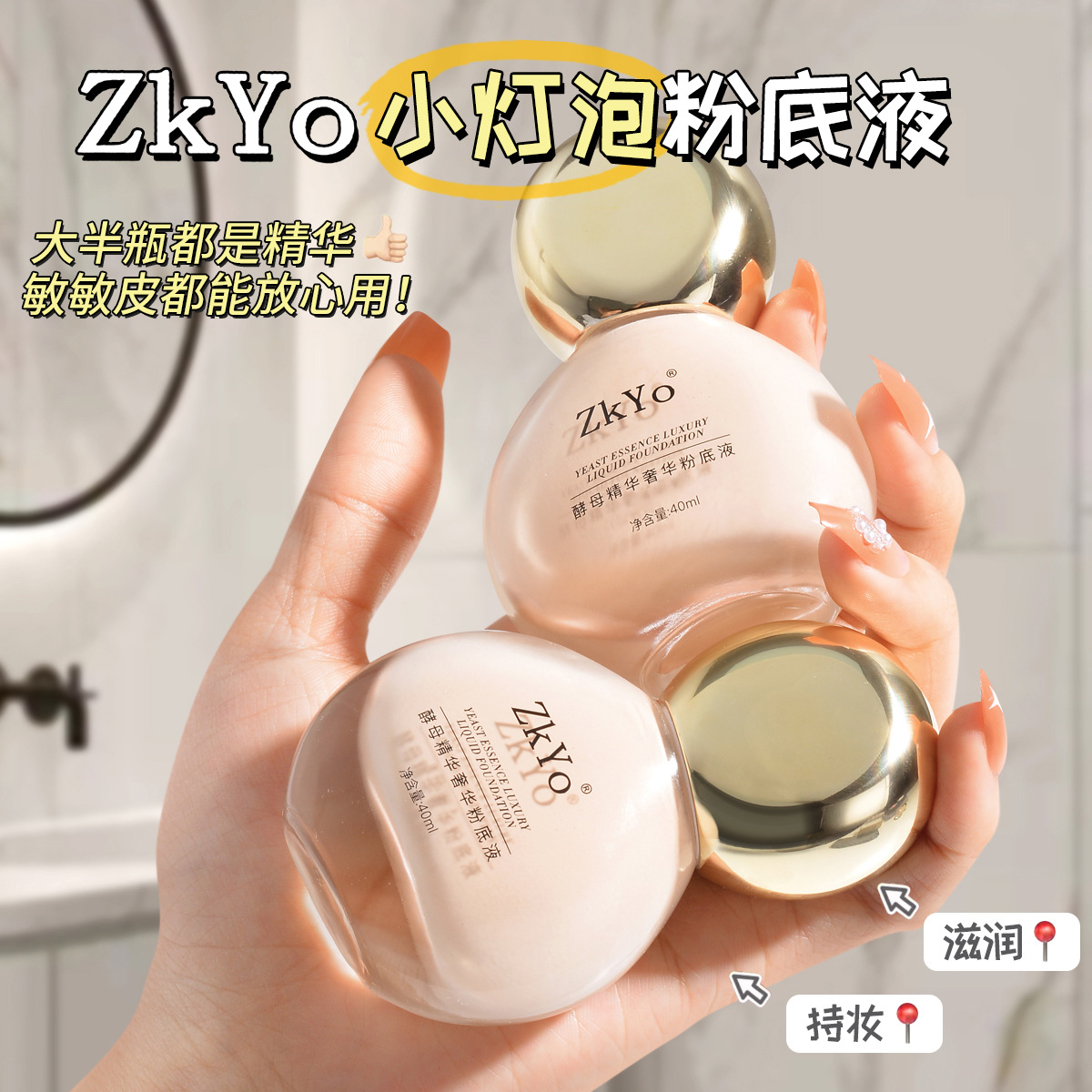 Zkyo酵母エキスファンデーションリキッドパウダーは持続的に化粧をしないで潤いを与えます。