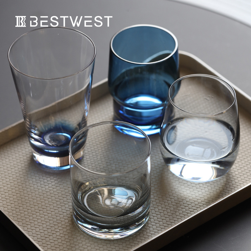 Best west現代シンプルな透明ガラスコップの置物の薄い家庭用リビングルームのハンドル付きのお茶のコップ