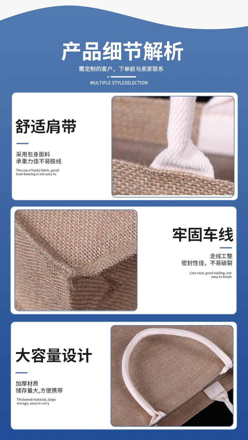 現物卸売り覇膜黄麻袋レトロ綿紐コーティング麻袋定作ロゴ携帯綿麻袋