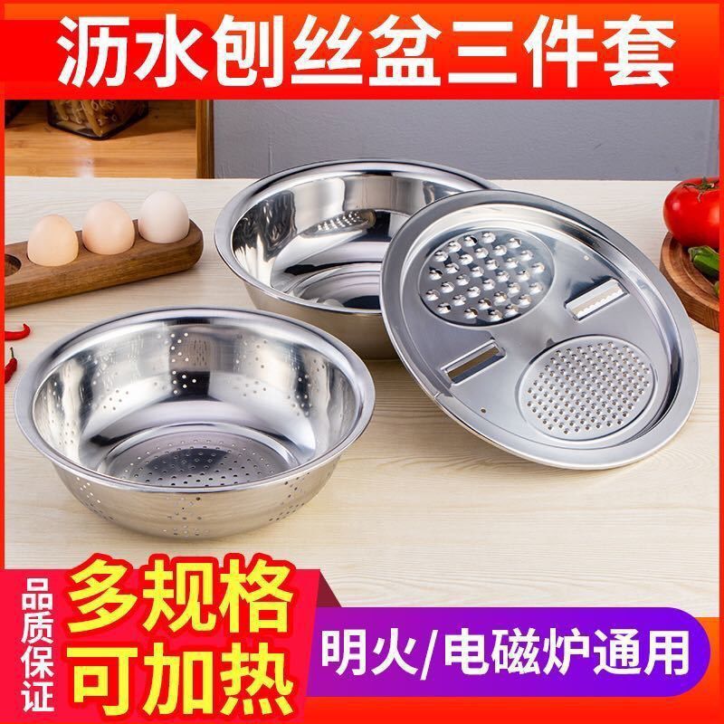 ステンレスの多機能のかんなの鉢の3つのセットの家庭用の台所は米を洗って水のたらいをふるいます。
