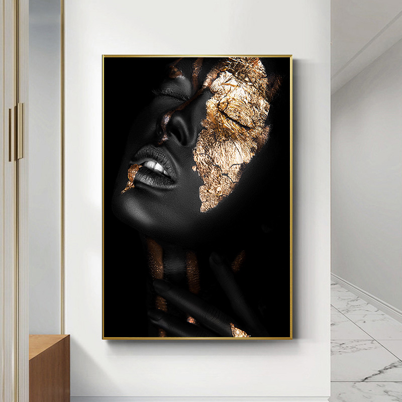 深セン工場アフリカ黒金女帆布画芯ナビア現代軽贅沢客間装飾画