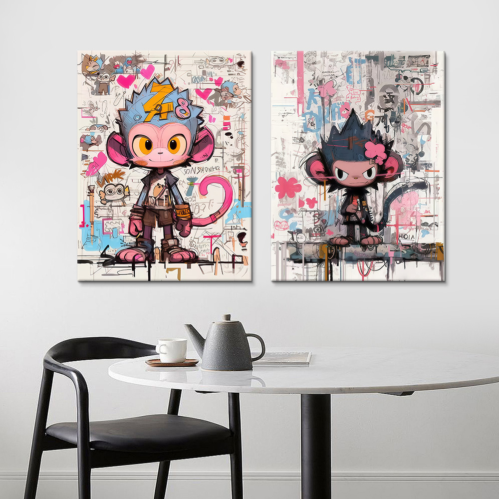 リビングルームと寝室の装飾絵画漫画イラストスタイル猿フレームレス絵画キャンバス絵画コアクリエイティブ壁画工場直販