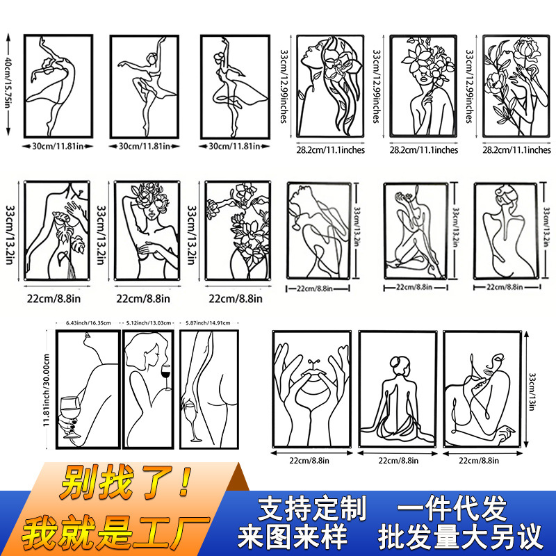 国境を越えた爆発的な創造的な鉄芸シルエット金属工芸品美女線画壁面吊り花ブリキ画装飾