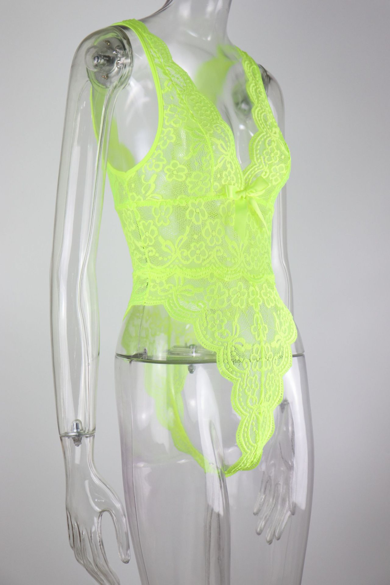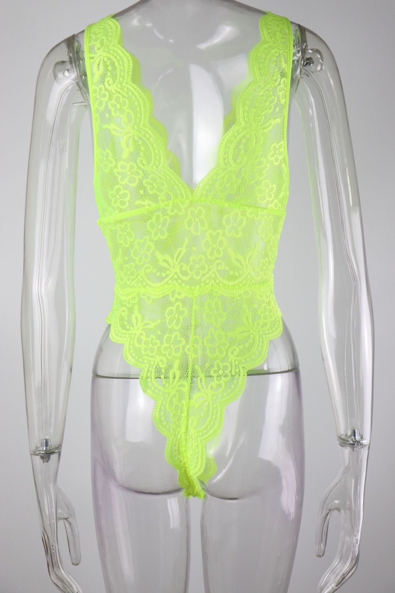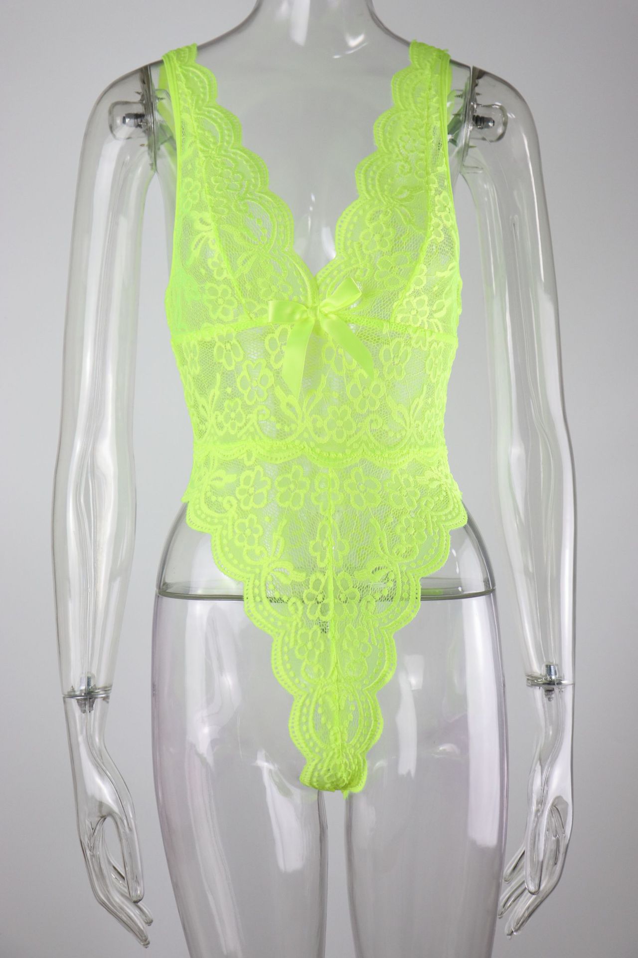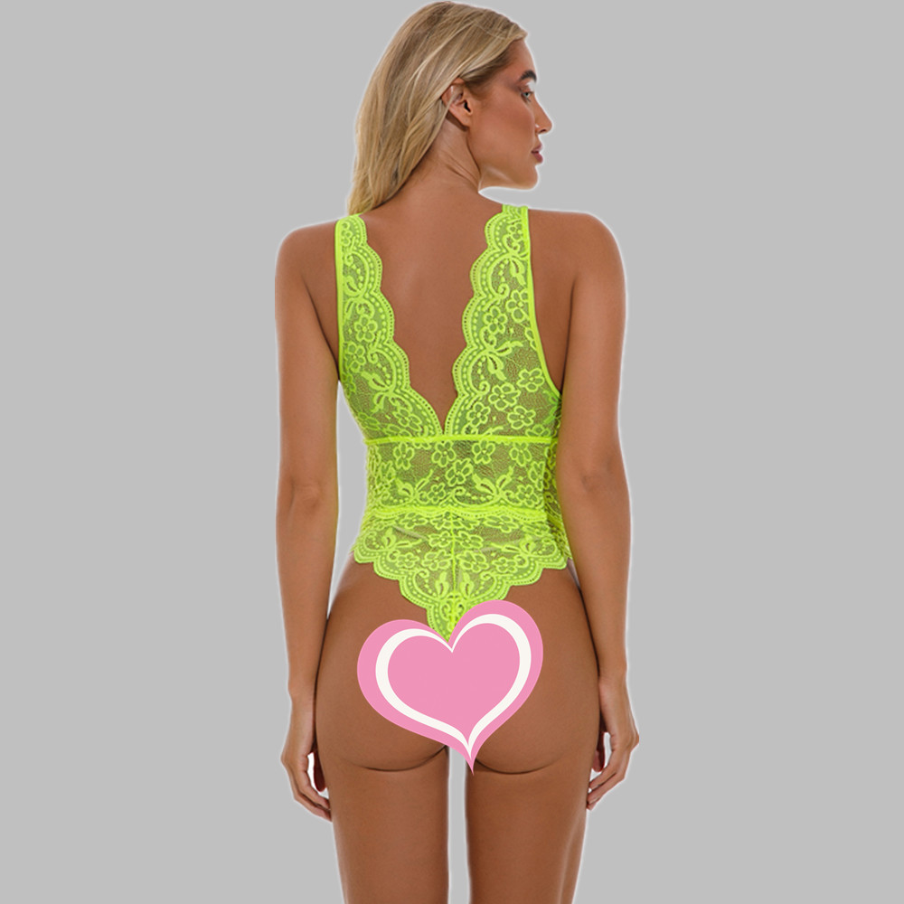 欧米の新型セクシーな女性服のレースの透視下着の透かし彫りの深いvネックのワンピースの現物