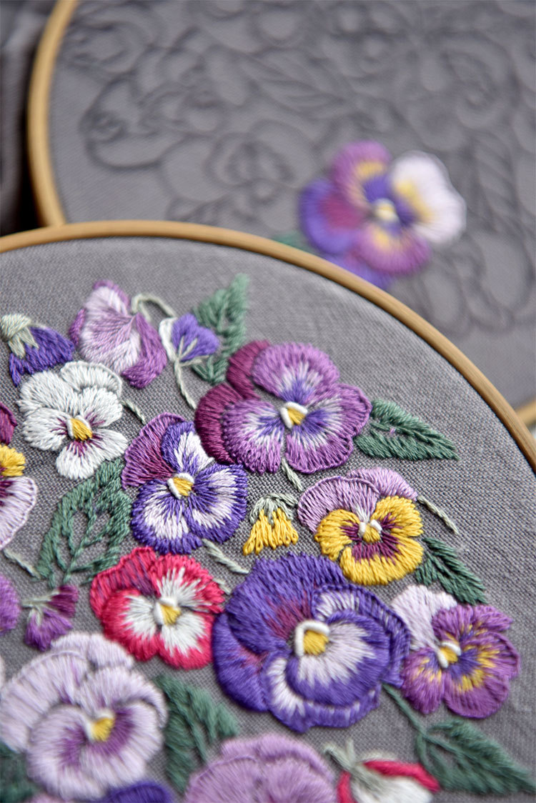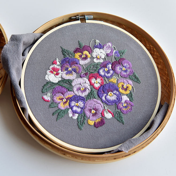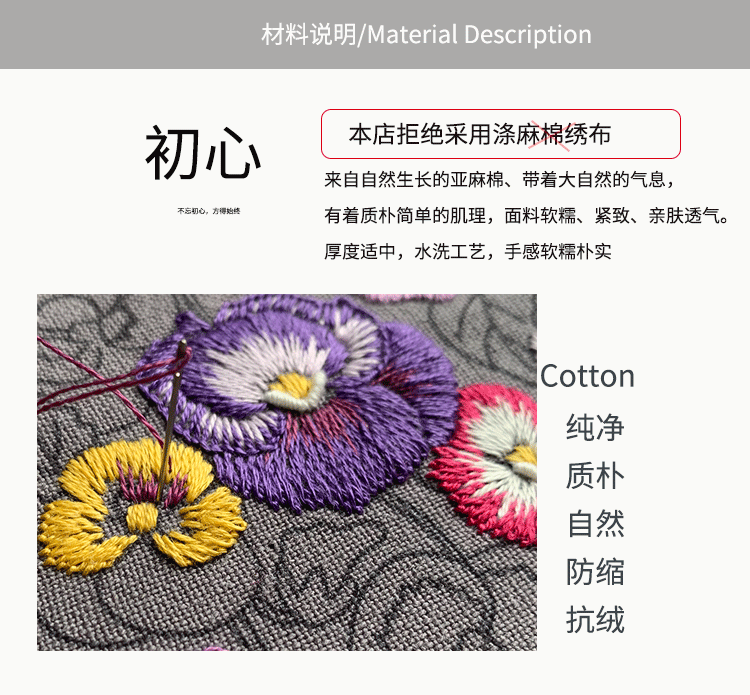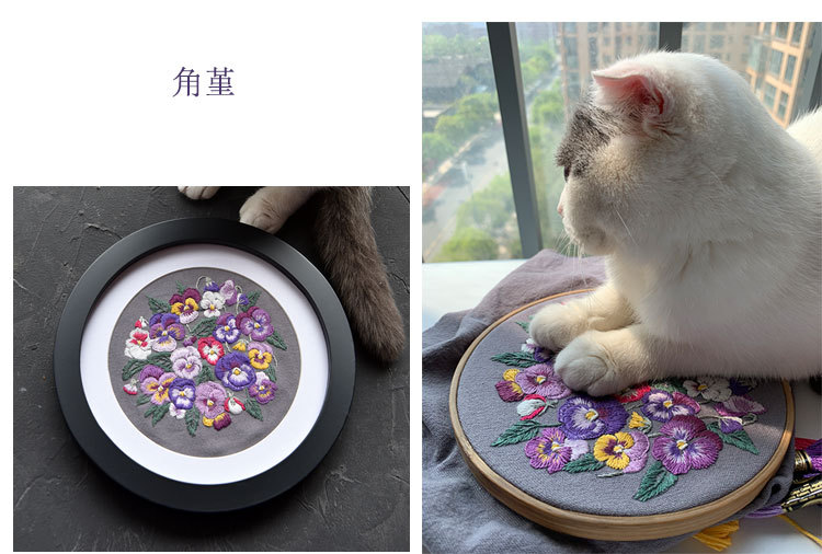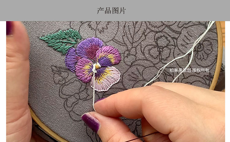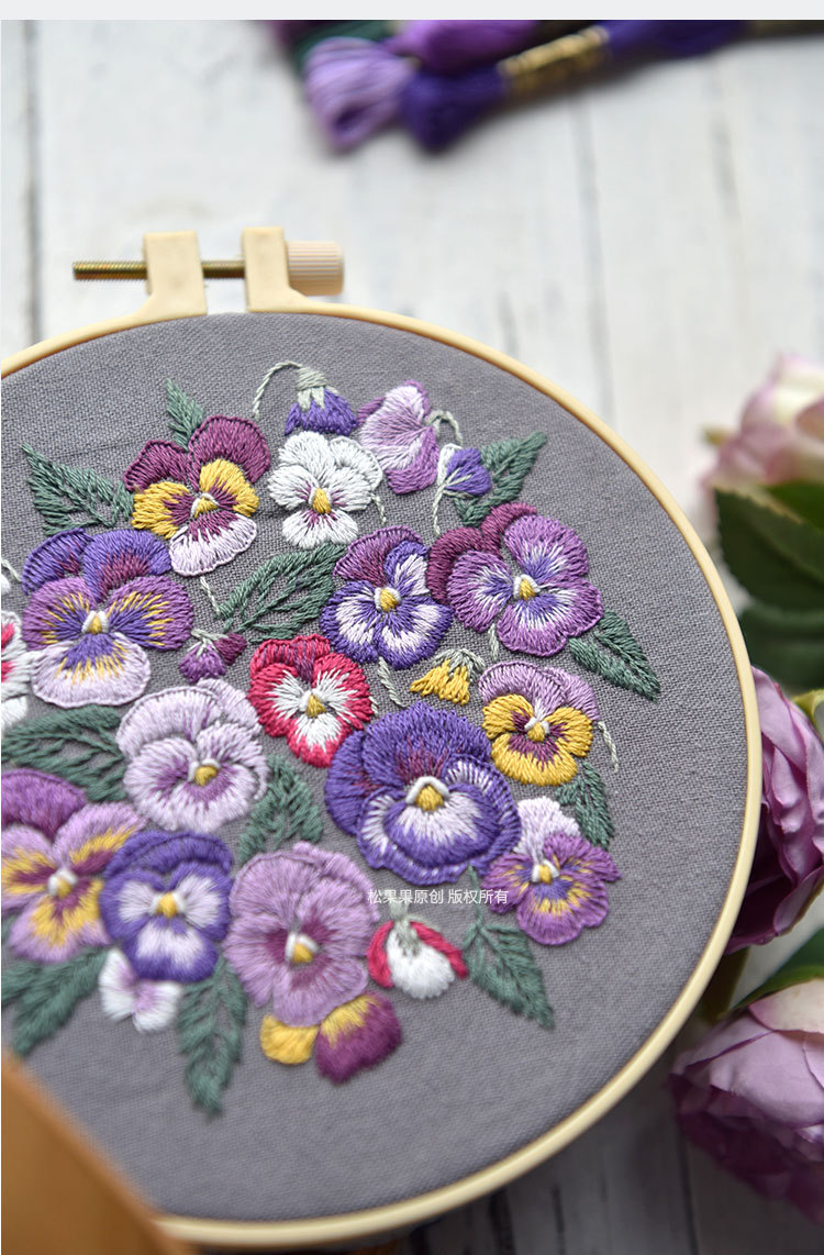 基础材料包内容:印图绣布(图案可水溶)、绣花针、绣花线(棉)、图纸教程、选配15或是18CM绣绷