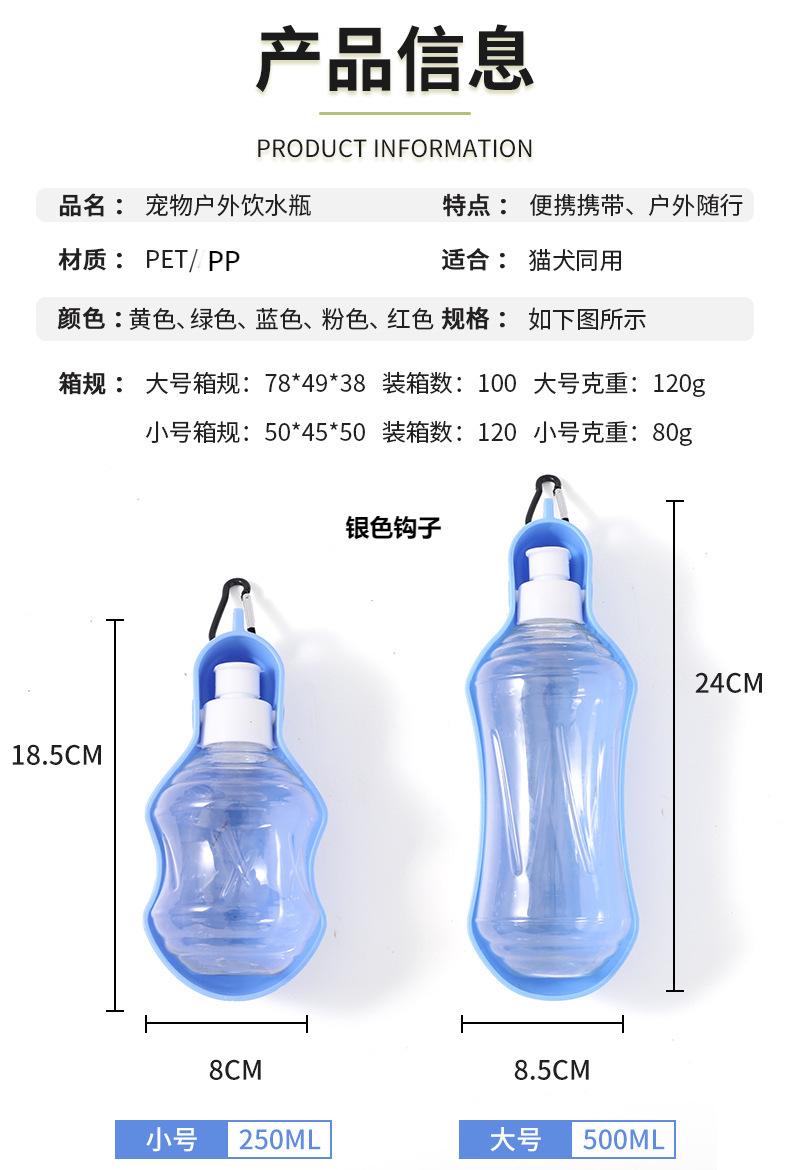 国境を越えて人気の犬用屋外携帯水筒、散歩や外出時のペット用携帯水筒、給水器、ペット用品