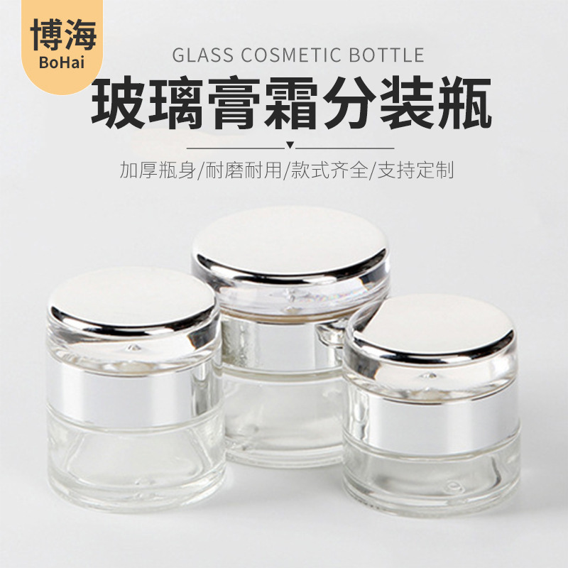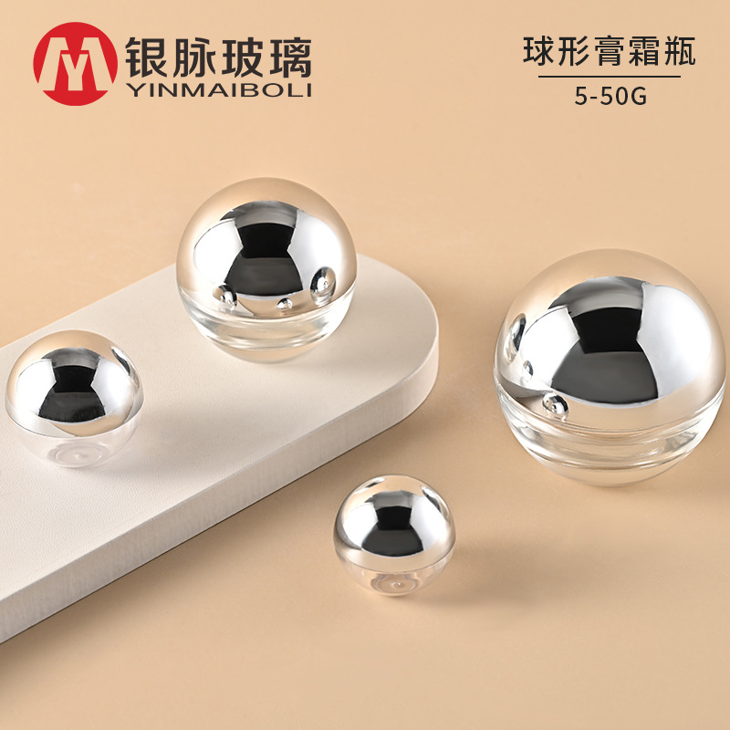 シルバーパルススポット 5g-50g 球状クリームボトル 10g 小容量プラスチックボトル 20g ガラスボトル フェイシャルクリームボトル