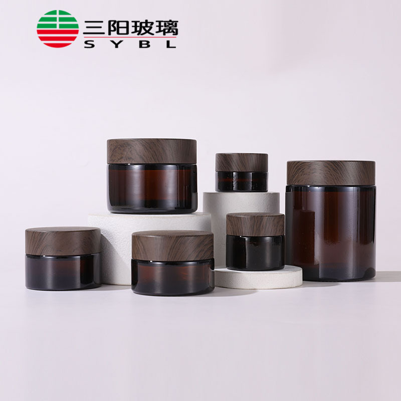 茶色のクリーム瓶5g-100gの濃い水転写木目蓋クリーム瓶クリーム瓶マスク瓶