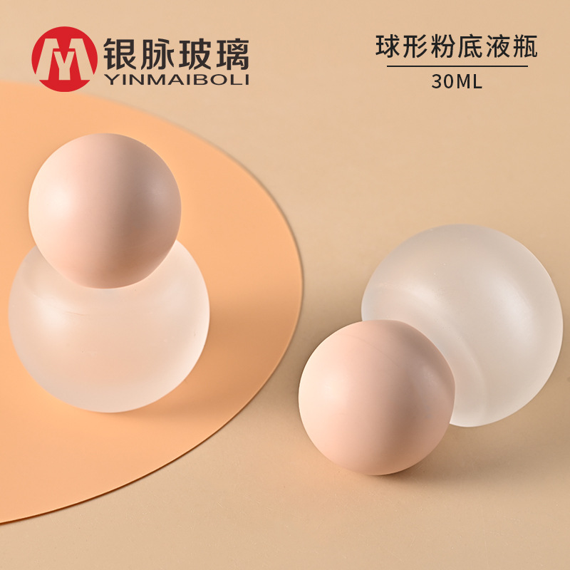 银脉现货30ml球形粉底液瓶压泵玻璃瓶化妆品包材隔离霜乳液分装瓶