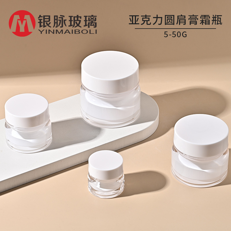 銀脈5g-50gアクリルクリーム瓶白い丸い肩アイクリームクリーム瓶化粧品分注ペットボトル