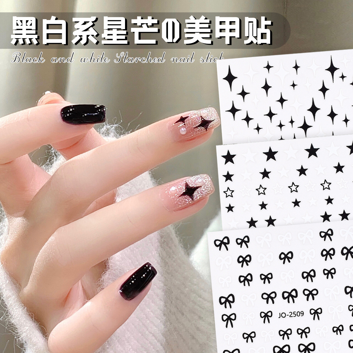 黒白ネイルシール星芒五角星愛蝶ネクタイ爪装飾貼り小さな模様ネット赤起爆金