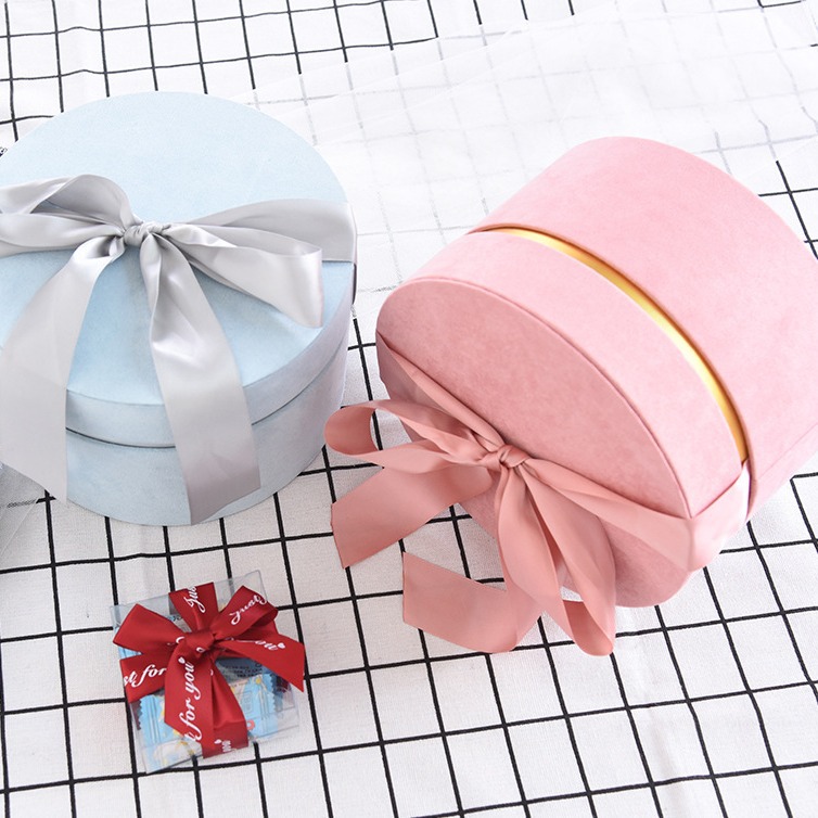 厂家现货鹿皮绒圆形圆筒回礼礼盒喜糖包装盒生日花艺礼品圆盒礼物