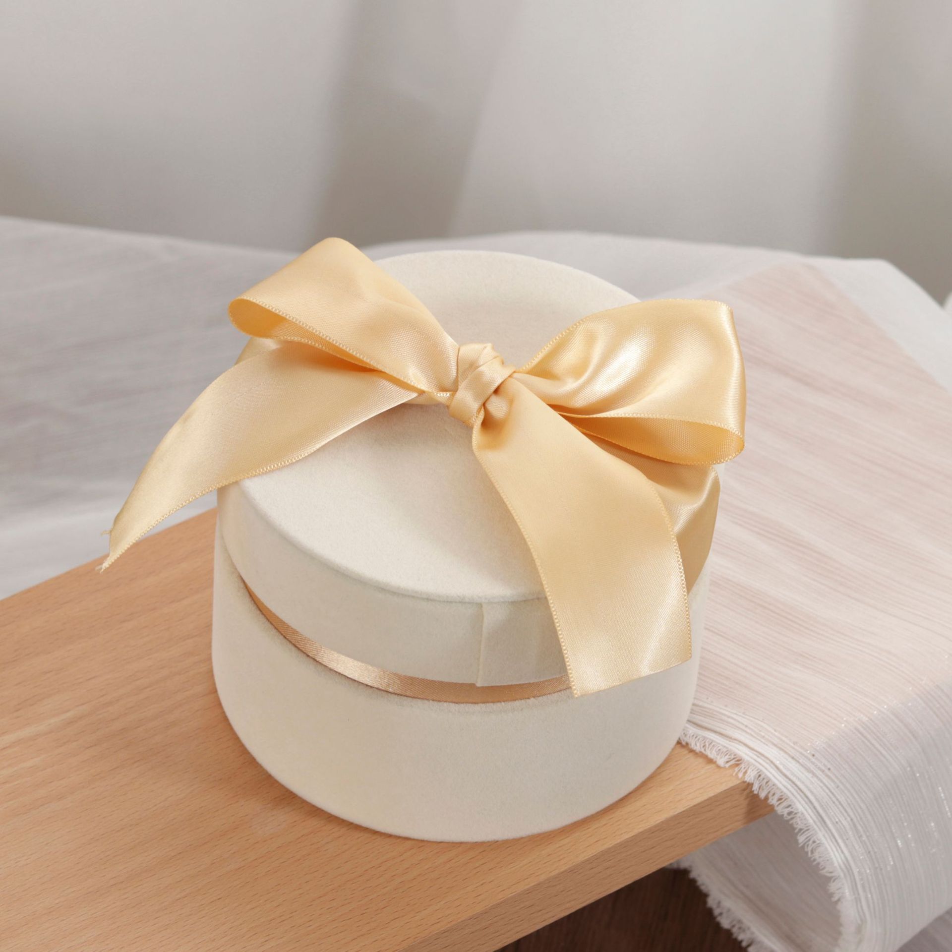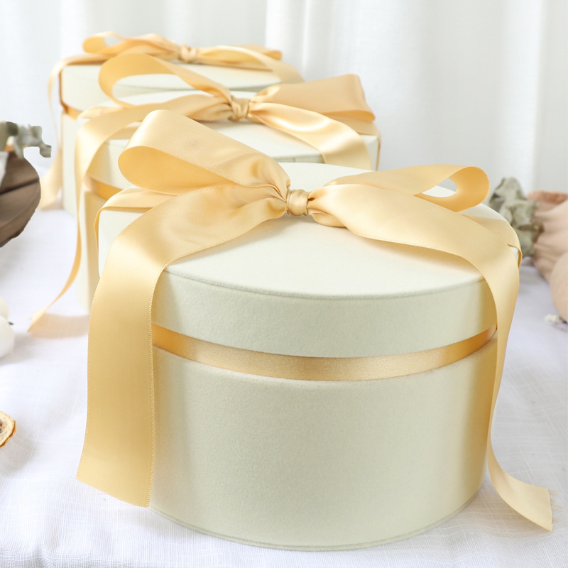 精美天地盖绒布伴手礼盒圆形婚庆蝴蝶结喜糖盒子生日礼物包装空盒