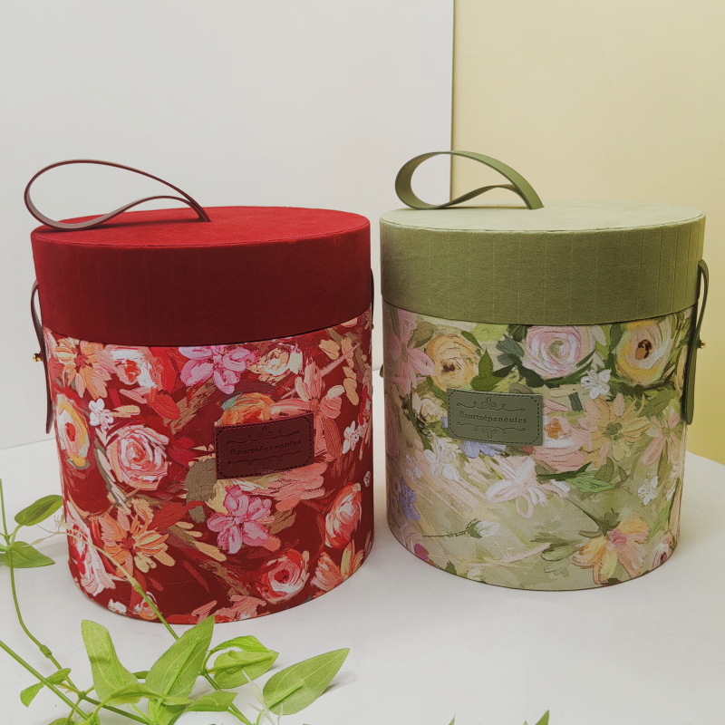 メーカー現物鹿皮絨毛円形円筒結婚祝いお返しギフトボックス喜糖包装箱誕生日花芸プレゼント丸箱