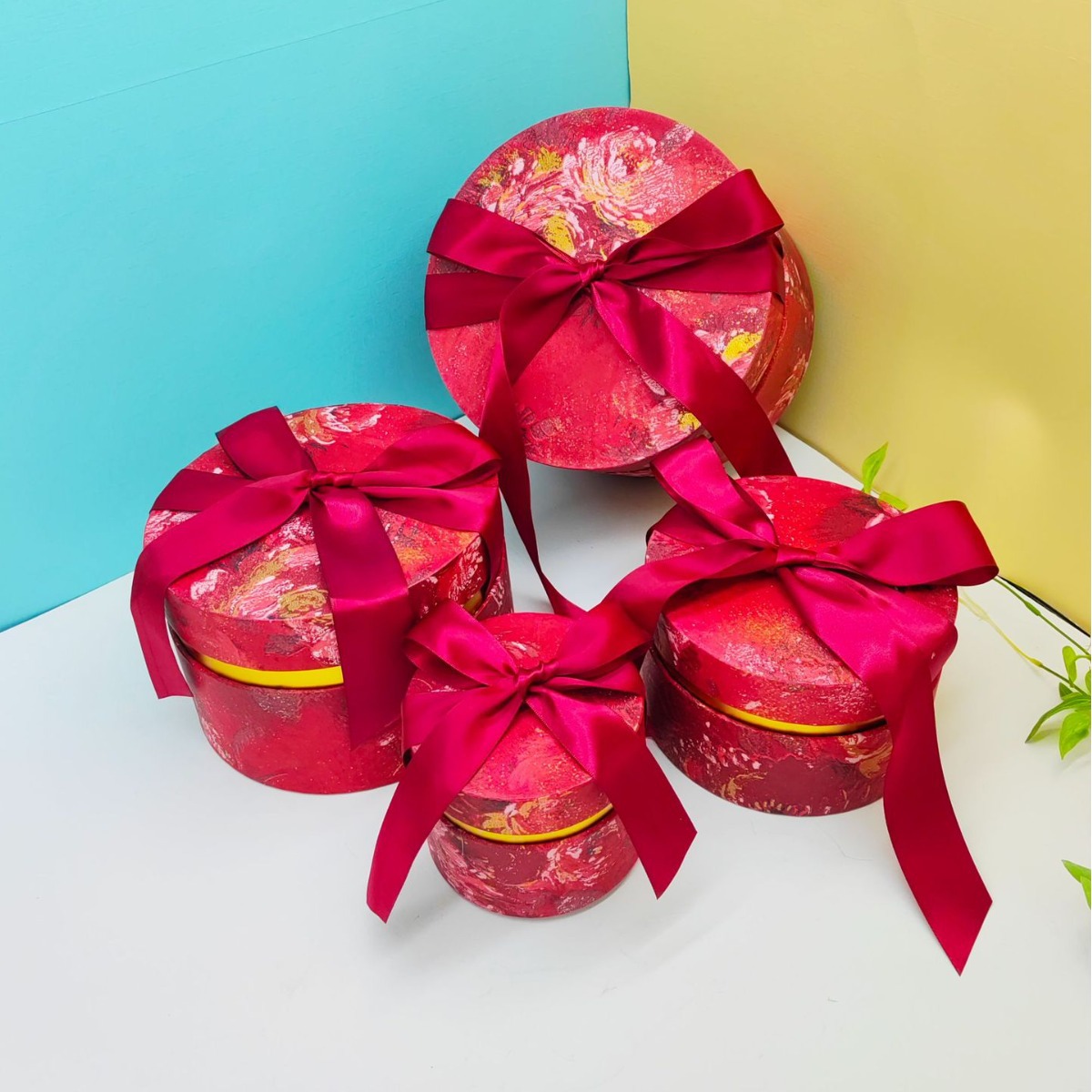 新年用ベルベット丸型抱き桶ギフトボックス空箱 結婚式 介添人 お土産 結婚式のお菓子包装箱 ベルベット包装箱