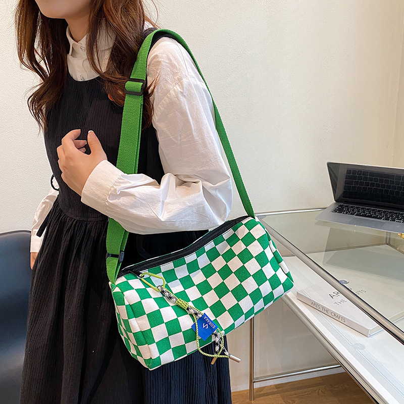 2022新型ナイロン女性バッグ洋気格子少女ショッピングシングルショルダーバッグファッション学生授業斜めショルダーバッグ女性
