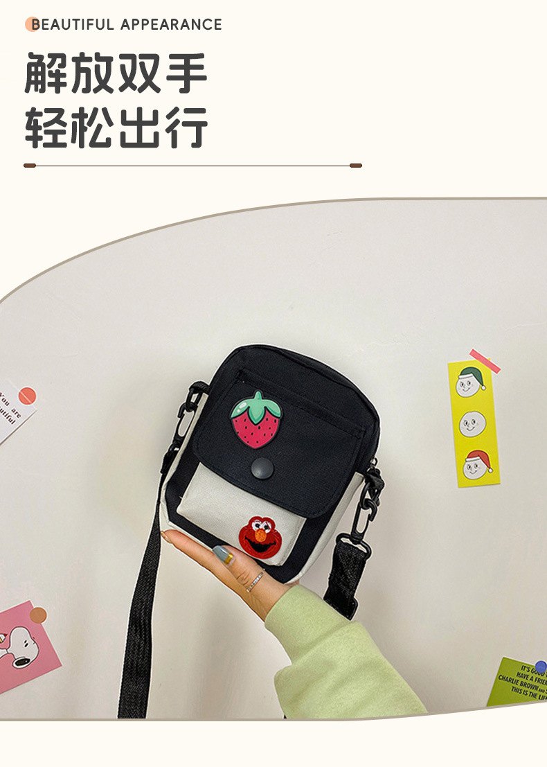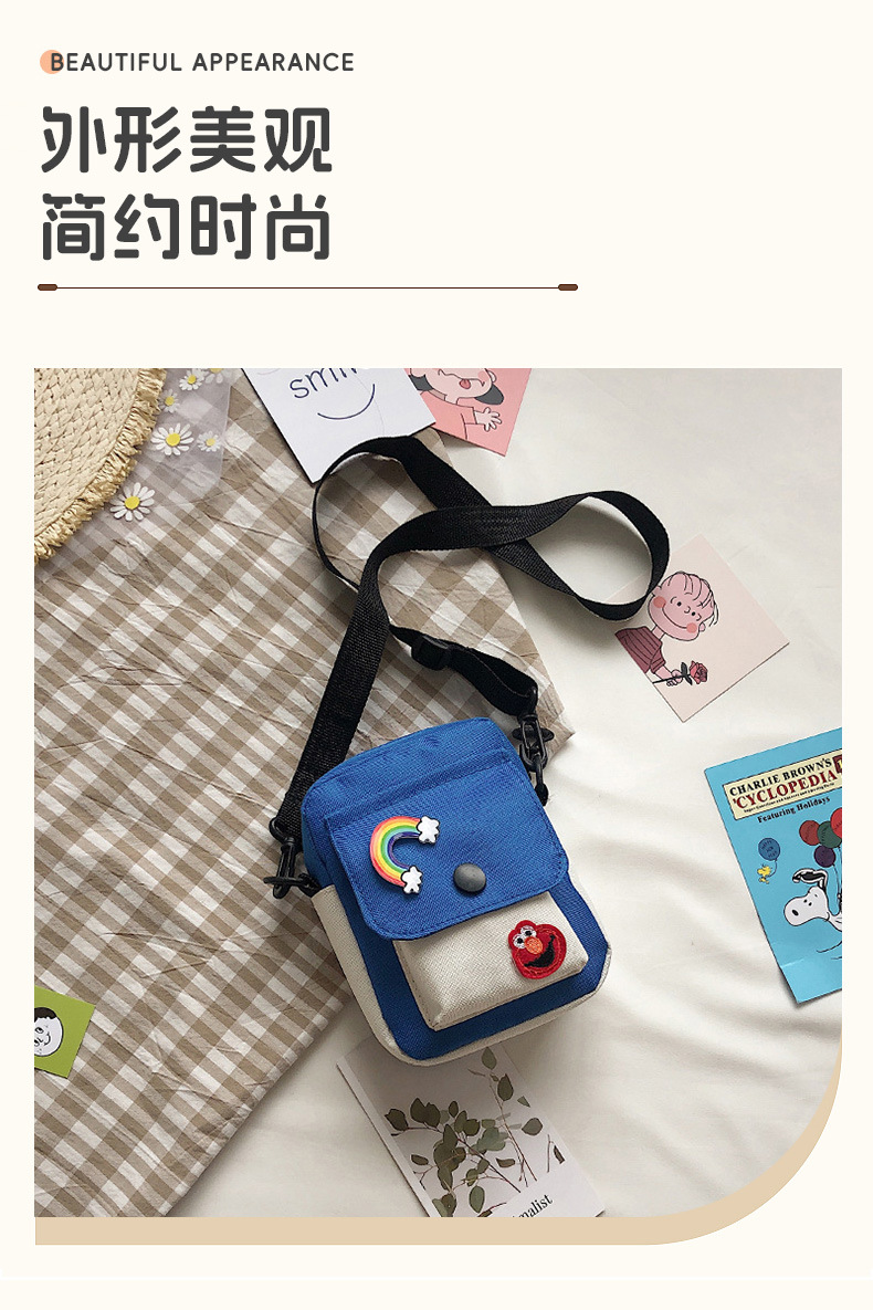 2025 新日本製キャンバスクロスボディバッグ漫画かわいい女子学生ショルダーバッグインターネットセレブ多用途携帯電話バッグトレンディ