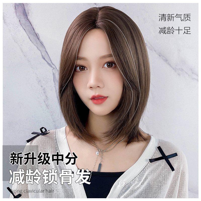 かつらの女性の短い髪のネットの赤いboboの頭の夏の韓国のデザインの空気の前髪は顔を修理して年齢を減らします。