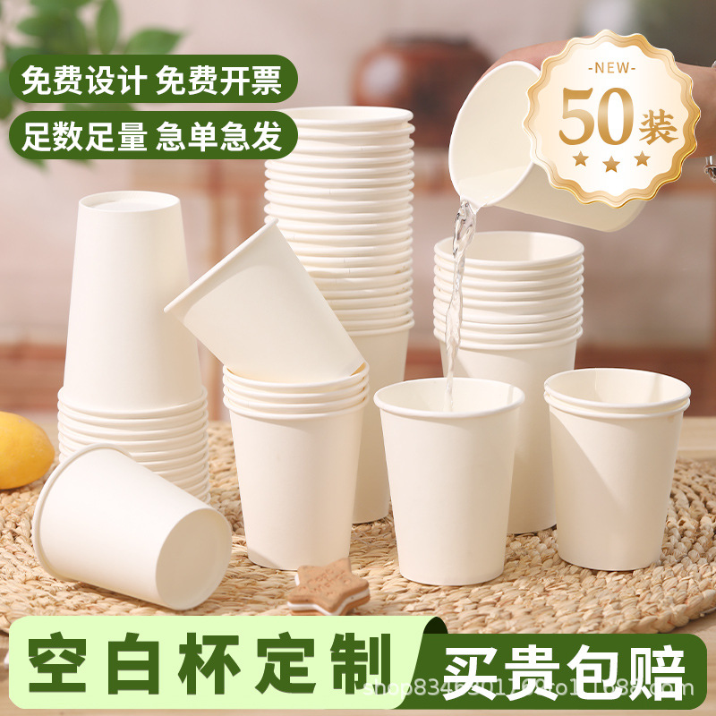 空白纸杯定制一次性杯子商用加厚水杯定做订制50只批发广告印logo
