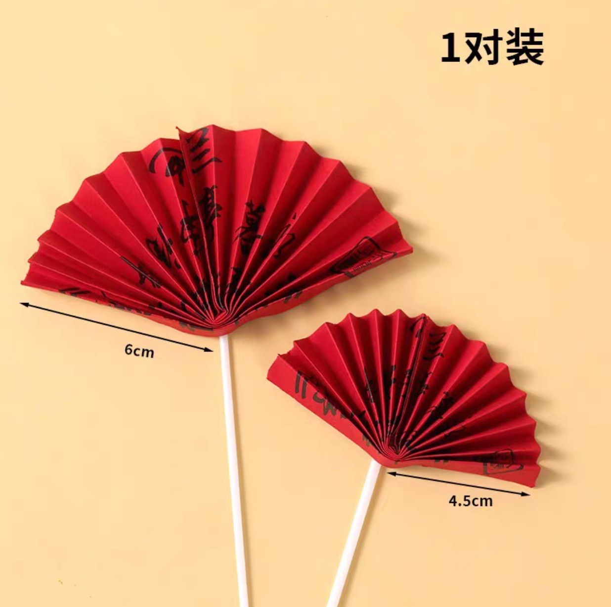 中国風扇子ケーキ装飾プラグイン祝寿老人誕生日飾りカード新年箔押し扇子10個入り