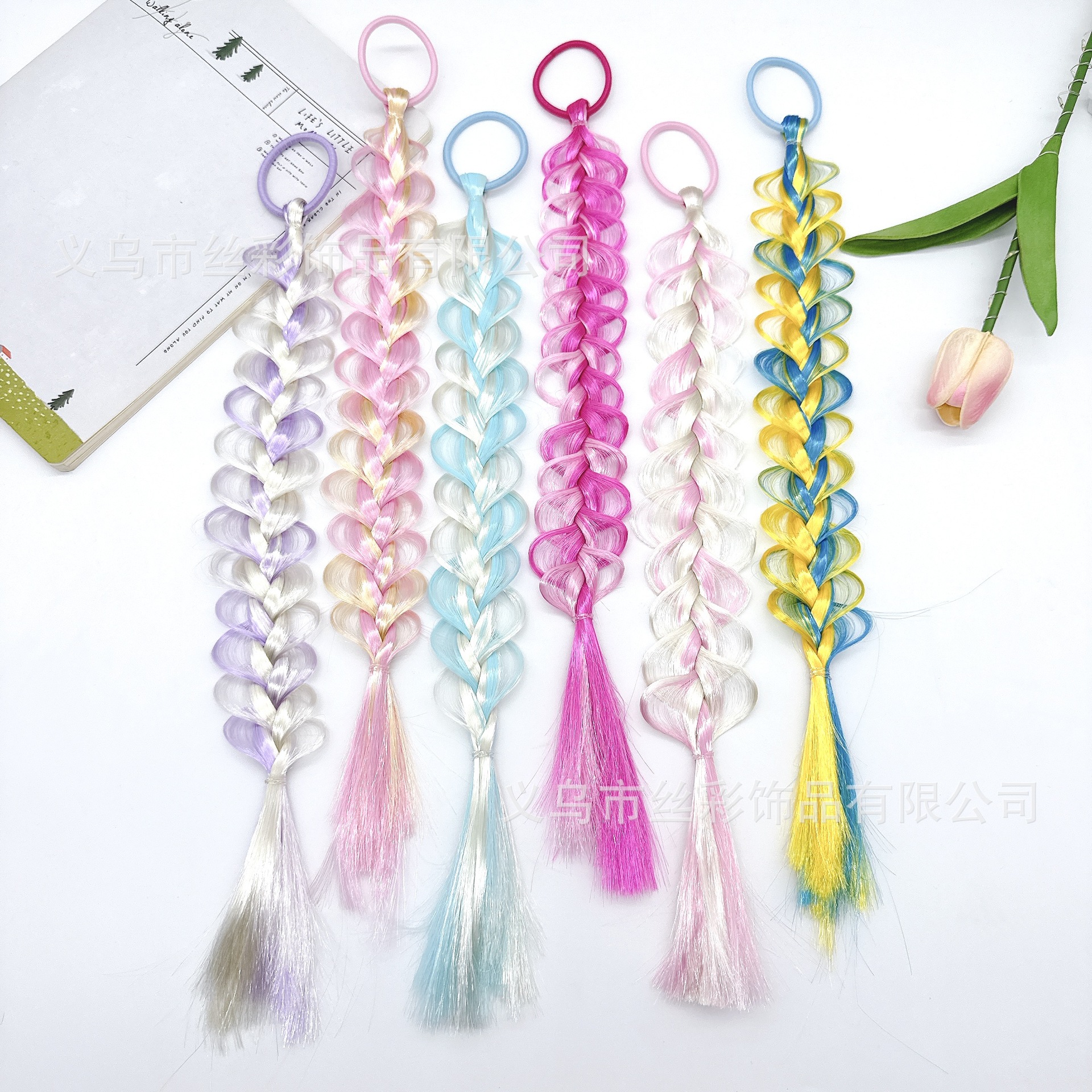 外贸儿童假发辫子七彩色拉花辫头饰泡泡辫发圈高弹力头绳马尾发饰