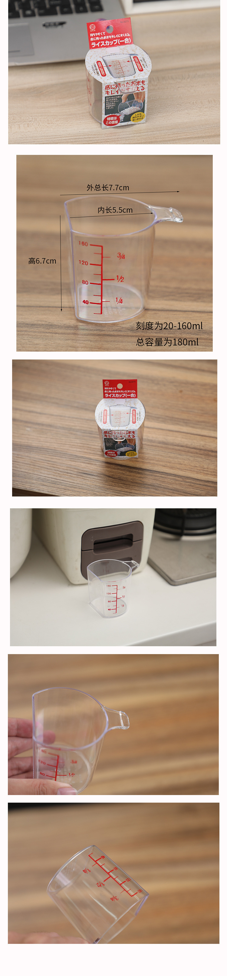 Km6273プラスチック計量カップホットミルク計量米カップクリームヨーグルトカップスケール計量カップハンドル付き180ml