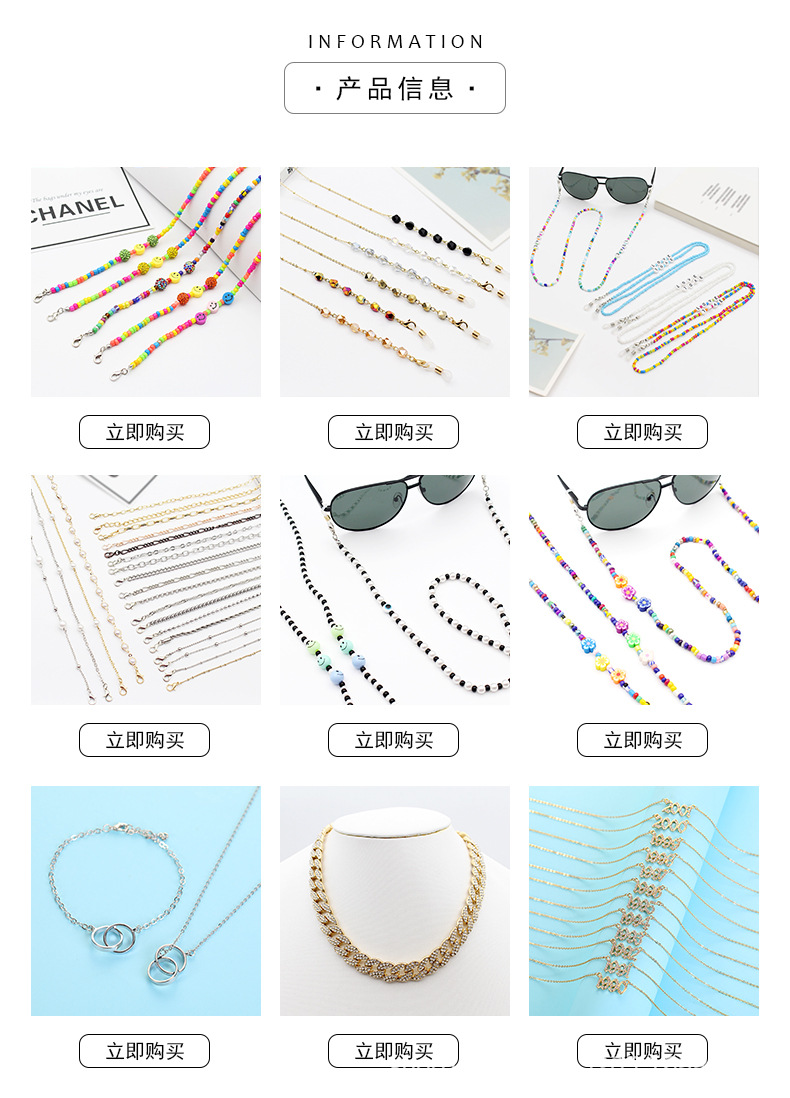 メガネチェーンクロスボーダーファッションシンプルチェーンビーズシリコンメガネ紐首クロスチェーン高級感マスクチェーン