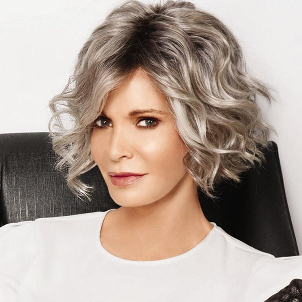 クロスボーダーのかつら欧米の女性の短い巻き髪のファッションの頭上の染色のグラデーションの金色のかつらの偏分の化学繊維の頭カバー