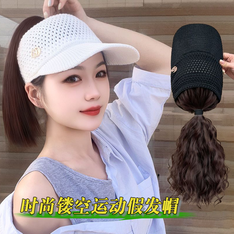 帽子のかつらの一体の女性の夏の新型の透かし彫りの空の帽子の高い馬尾のファッションの日よけの運動の通気性のかつらの帽子