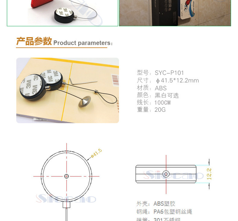 工場直販 丸型ディスプレイ盗難防止コード 引き出し式ボックス 携帯電話盗難防止チェーン 自動巻き取り式コード