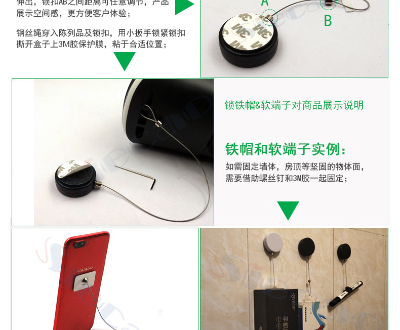 卸売り水滴形盗難防止ケーブルボックスミニコネクタ体験伸縮展示棚紛失防止部品ワイヤーバックル