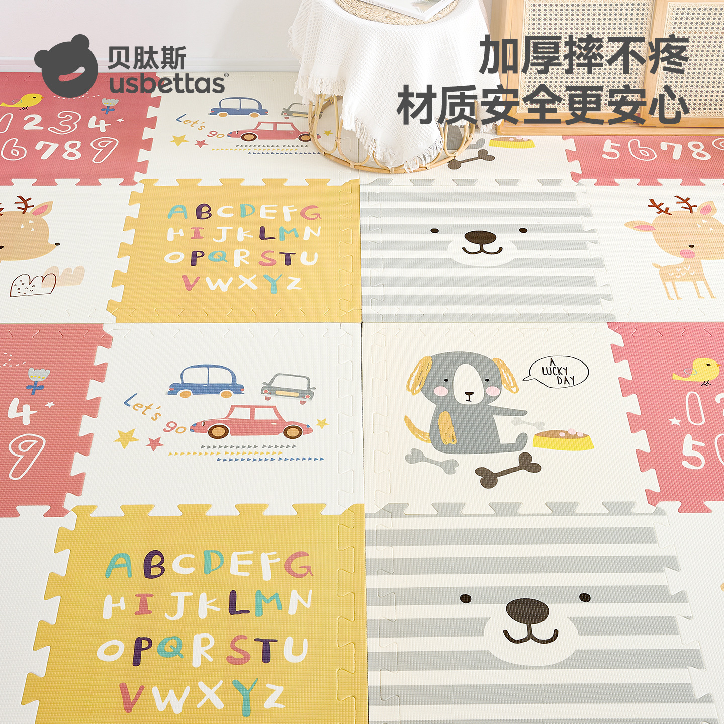 贝肽斯宝宝拼接爬爬垫婴儿加厚家用XPE爬行垫 无甲醛儿童地垫客厅