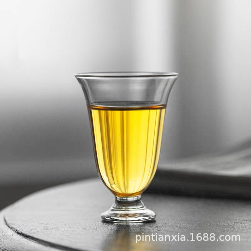 透明ガラス高足品茗杯緑茶カップ聞香カップ品鑑カップ耐熱カップ家庭用工夫茶器