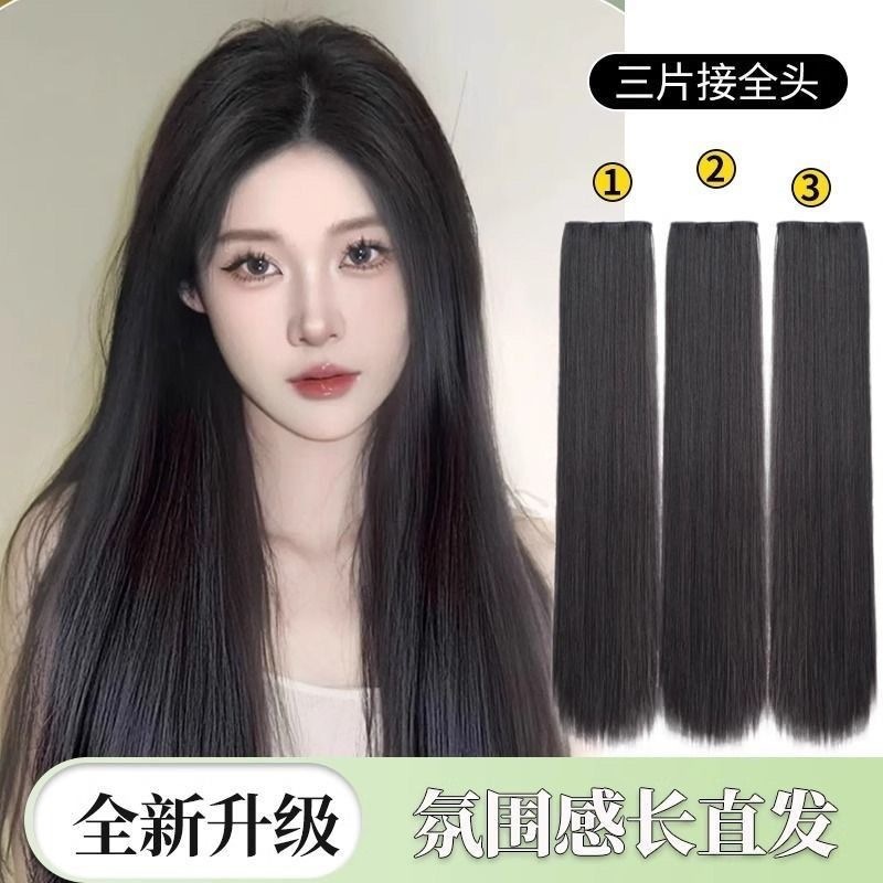 かつらの女性の長い髪のワンピースのステルスのないシミュレーションの髪のふわふわしている3つの板式のストレートな髪の増加量は貼ることを提供します。