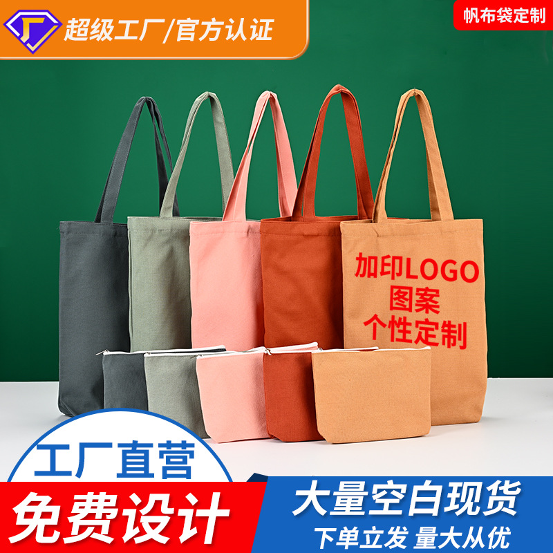 ハイエンドのポータブルキャンバスバッグ化粧品バッグセットカスタマイズされたクロスボーダー広告ブランクショルダーキャンバスバッグカスタマイズ