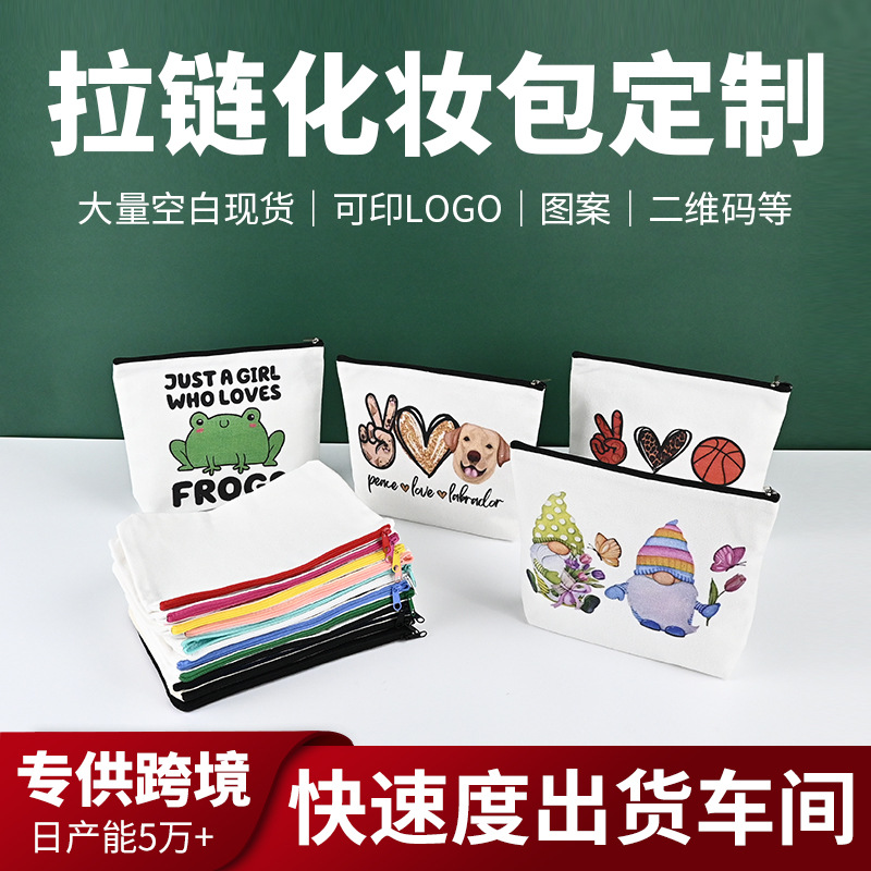 スポットクロスボーダージッパーキャンバス化粧品バッグカスタマイズされた学生文具ペンバッグ手持ちブランク収納袋カスタムメイド