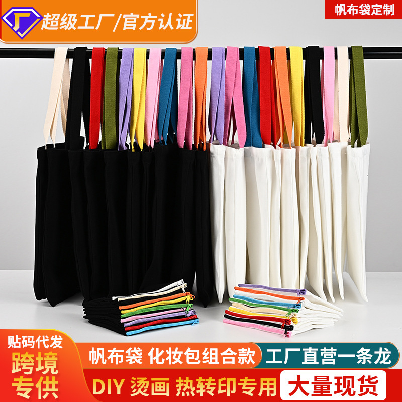 現物キャンバスバッグ化粧袋セットアマゾンクロスボーダーdiy空白手提げキャンバスバッグカスタム高級感