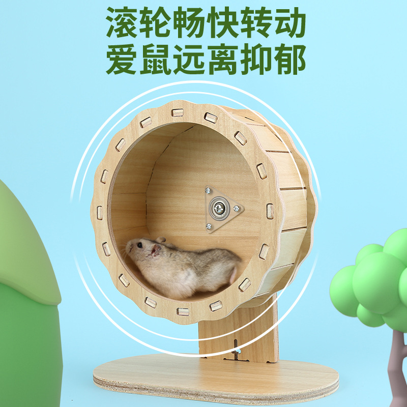 ハムスター実木走輪静音無音回転輪木製玩具金糸熊ランニング機スタンド付きハムスター用品