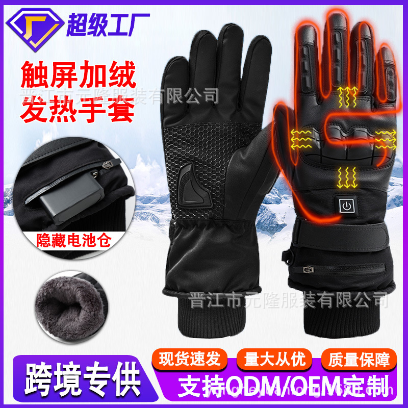 跨境冬季电加热手套充电五指发热户外运动骑行保暖触屏电暖手套男