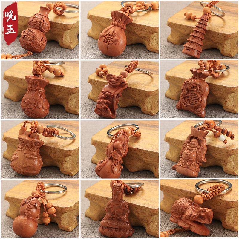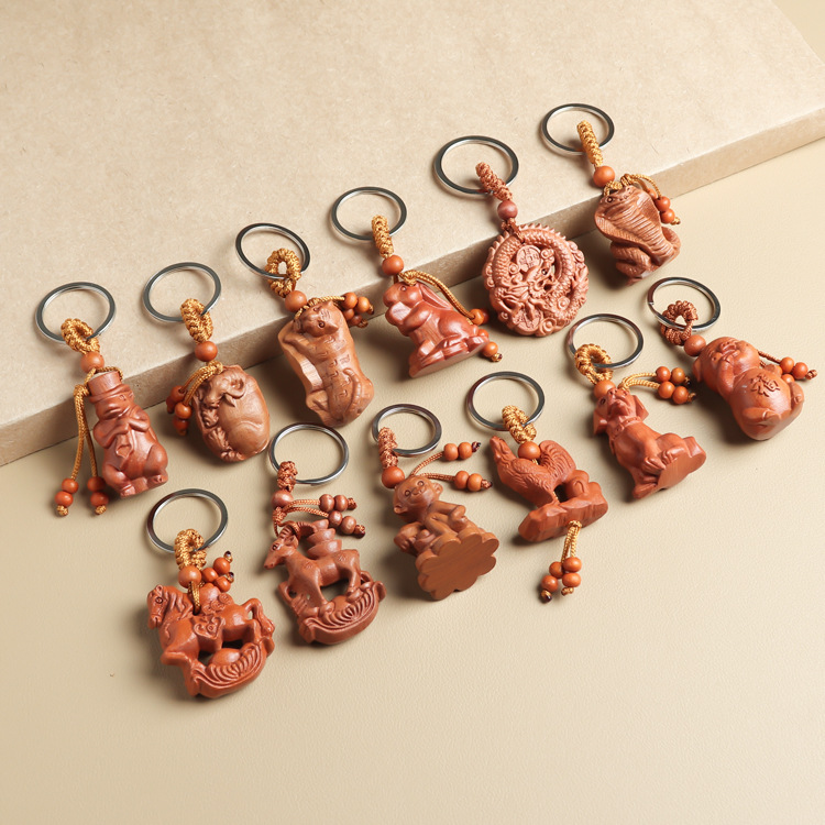 ピーチウッド立体干支キーホルダーペンダントアクセサリーピーチウッド彫刻工芸品を供給します。