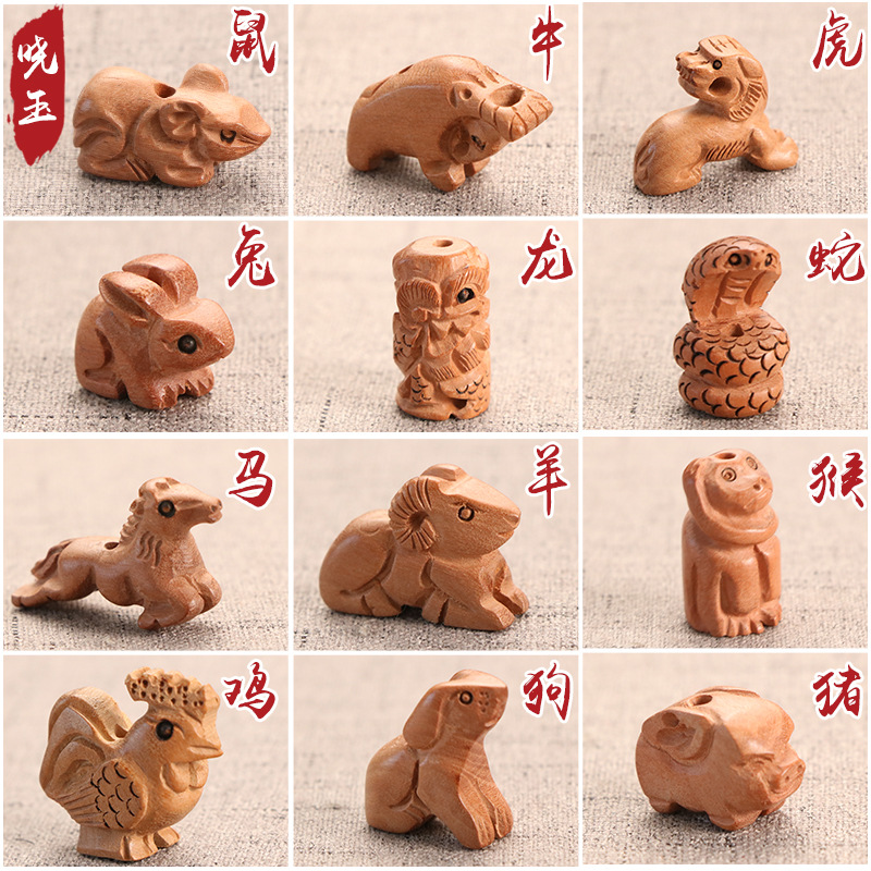 メーカーはレーザー彫刻桃木十二生肖の小さい部品を提供しています。