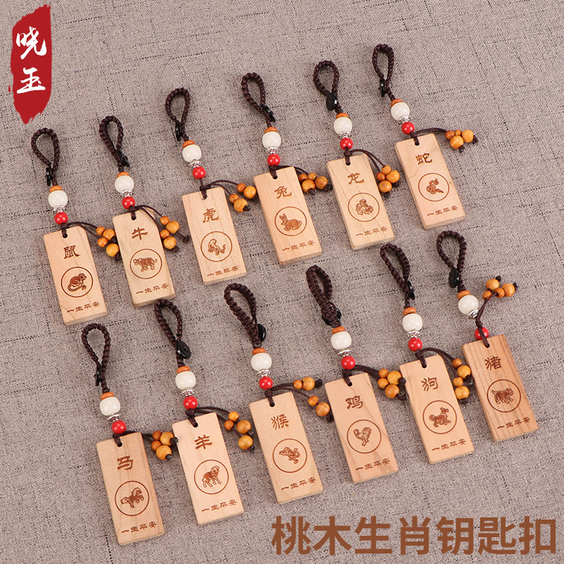 桃木十二生肖キーホルダーペンダント平面桃木生肖自動車キーホルダー安プレゼント