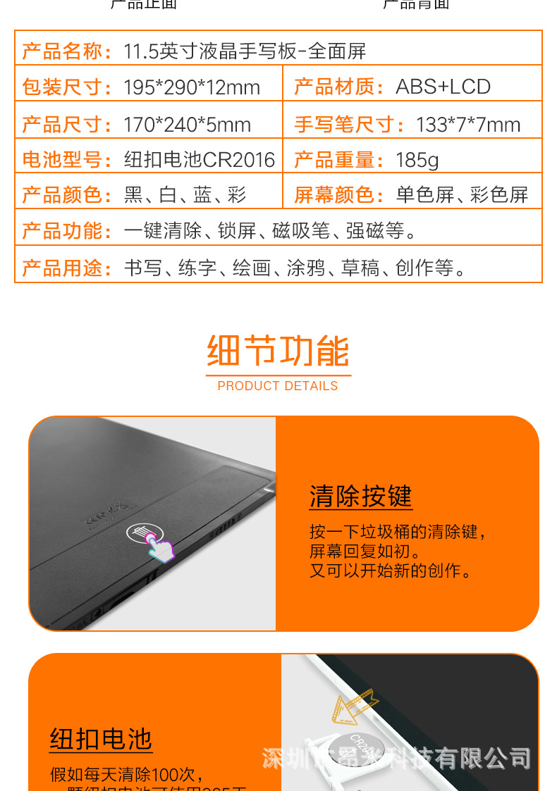 11.5inch フルスクリーン液晶手書きボード学生用ライティングボードビジネスオフィス学習スクラッチボードビジネスギフト