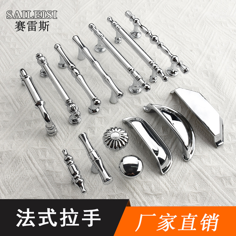 フランスの明るいクロムの明るい銀色の取っ手のタンスの戸棚の引き出しのドアの取っ手の現代のシンプルなクリームの風の軽い豪華な金属