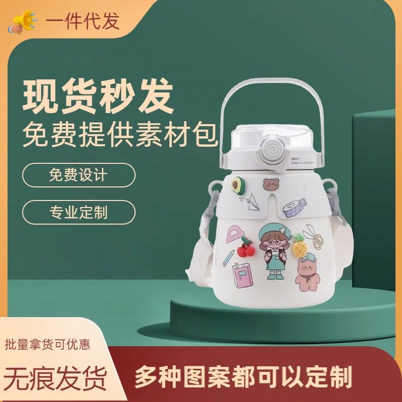 316ダブルドリンク大腹保温カップ漫画ストロー付き女性高颜値カップかわいい学生カップ屋外ストラップ