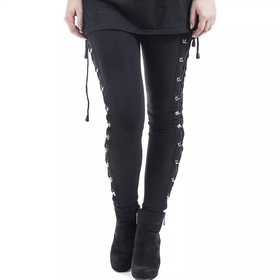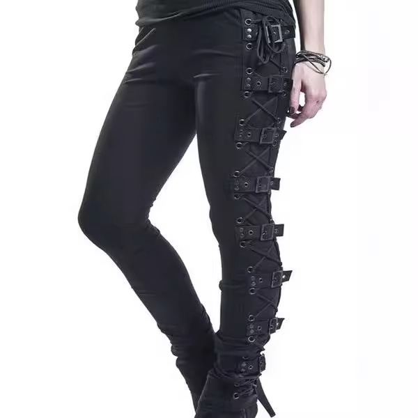 クロスボーダー女装対外貿易高弾サイドクロスストラップ鶏眼打打パンク風小脚ズボン
