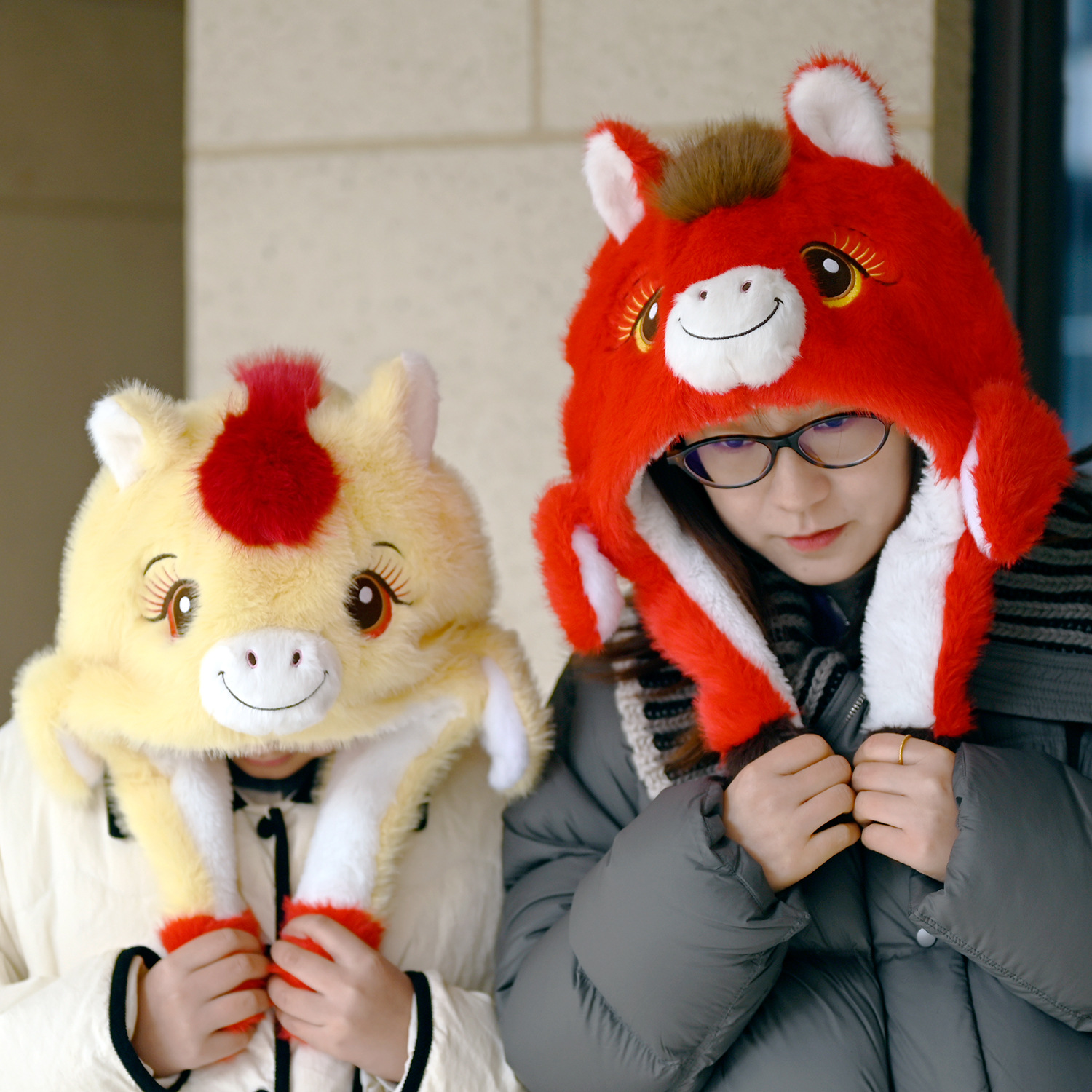 创意马年吉祥物可爱小马帽子头套卡通头饰毛绒冬季保暖护耳雷锋帽