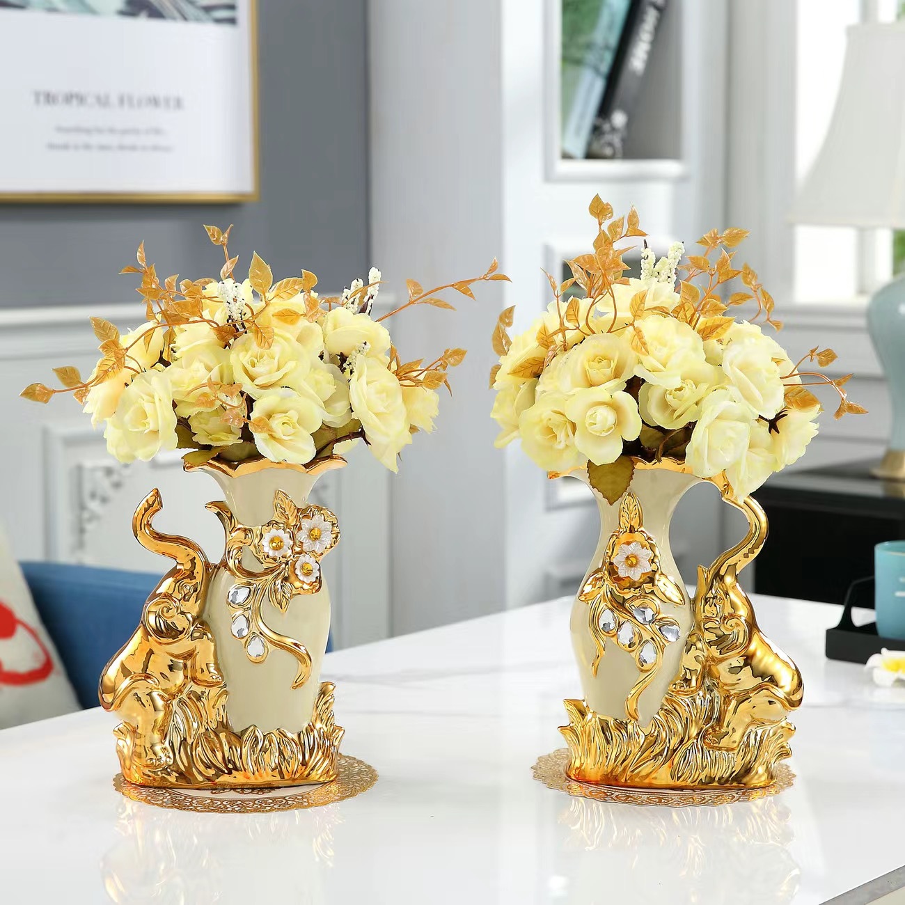 60cm床置きセラミック大花瓶ヨーロッパ風花瓶置物大サイズリビングテレビ戸棚玄関金色生け花