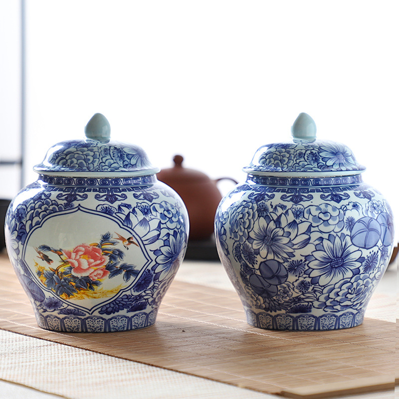 茶の葉の缶の陶磁器の青花の磁器の密封の貯蔵の缶の特大サイズのプーアルのお茶は茶筒の家庭用メーカーを詰めて卸売りします。